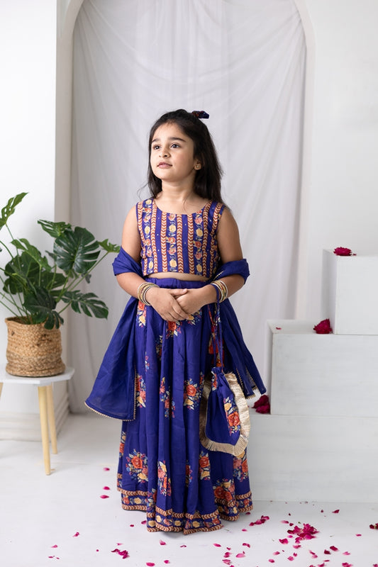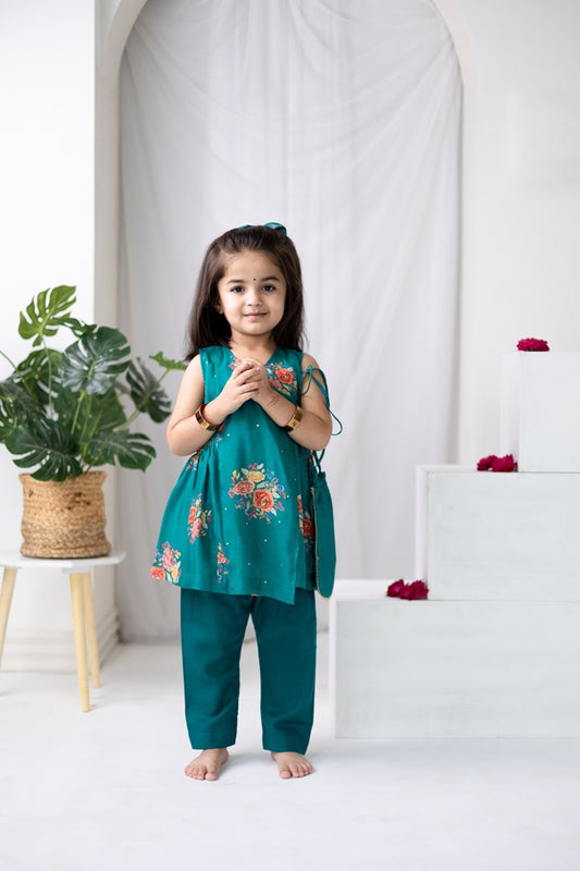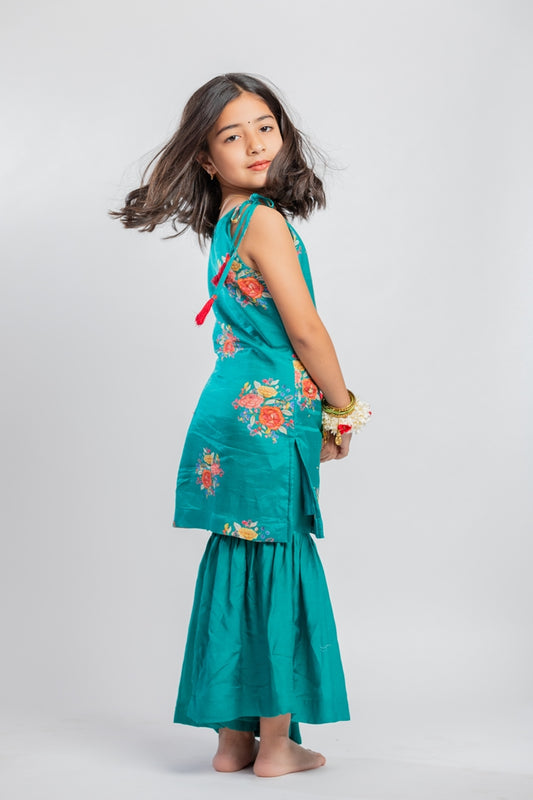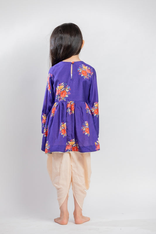 PURPLE BIG FLORAL GATHERED KURTA SET