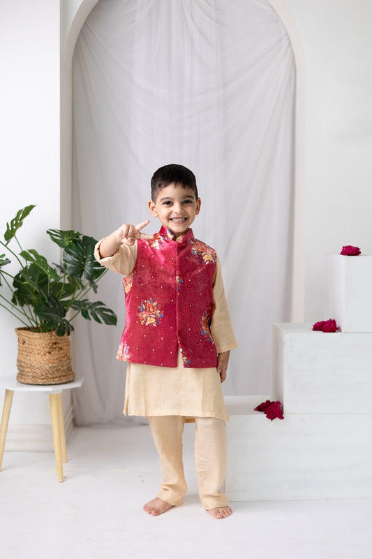 MAROON ANAR MOTIF PRINTED KURTA SET